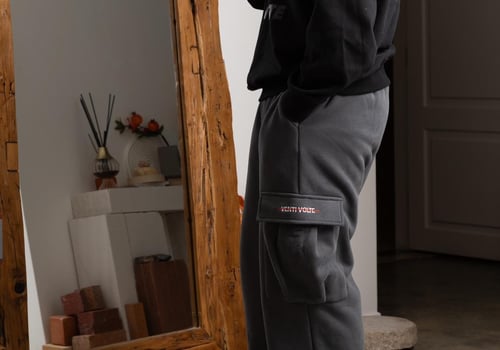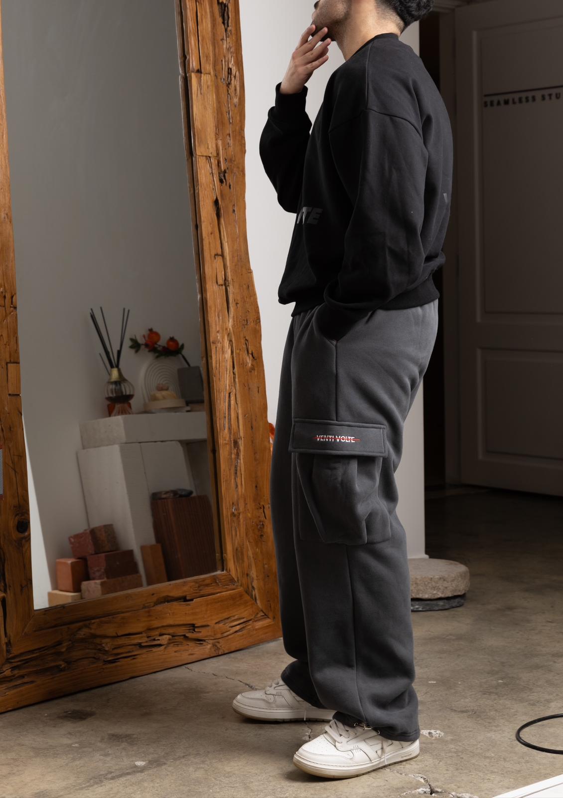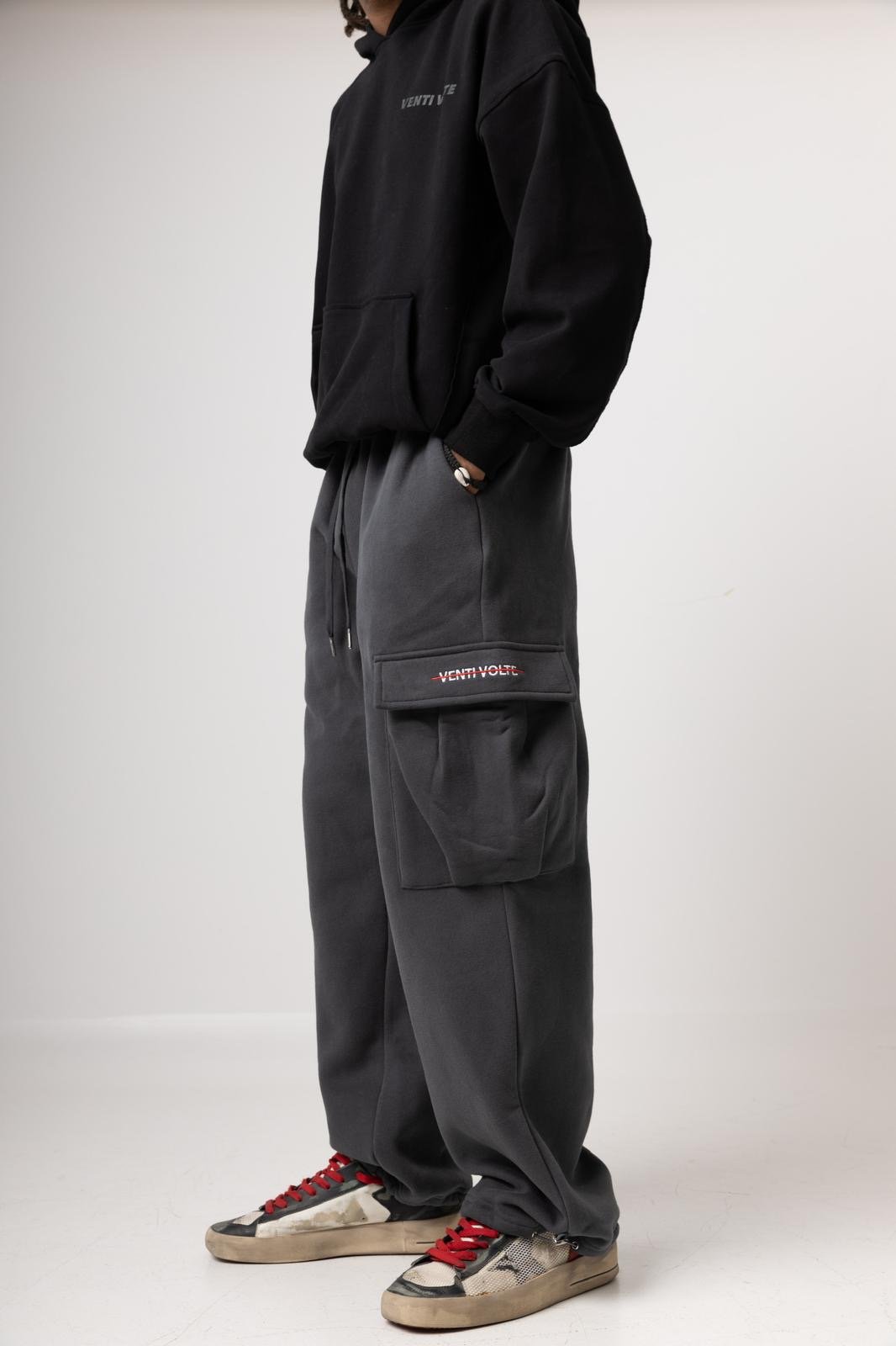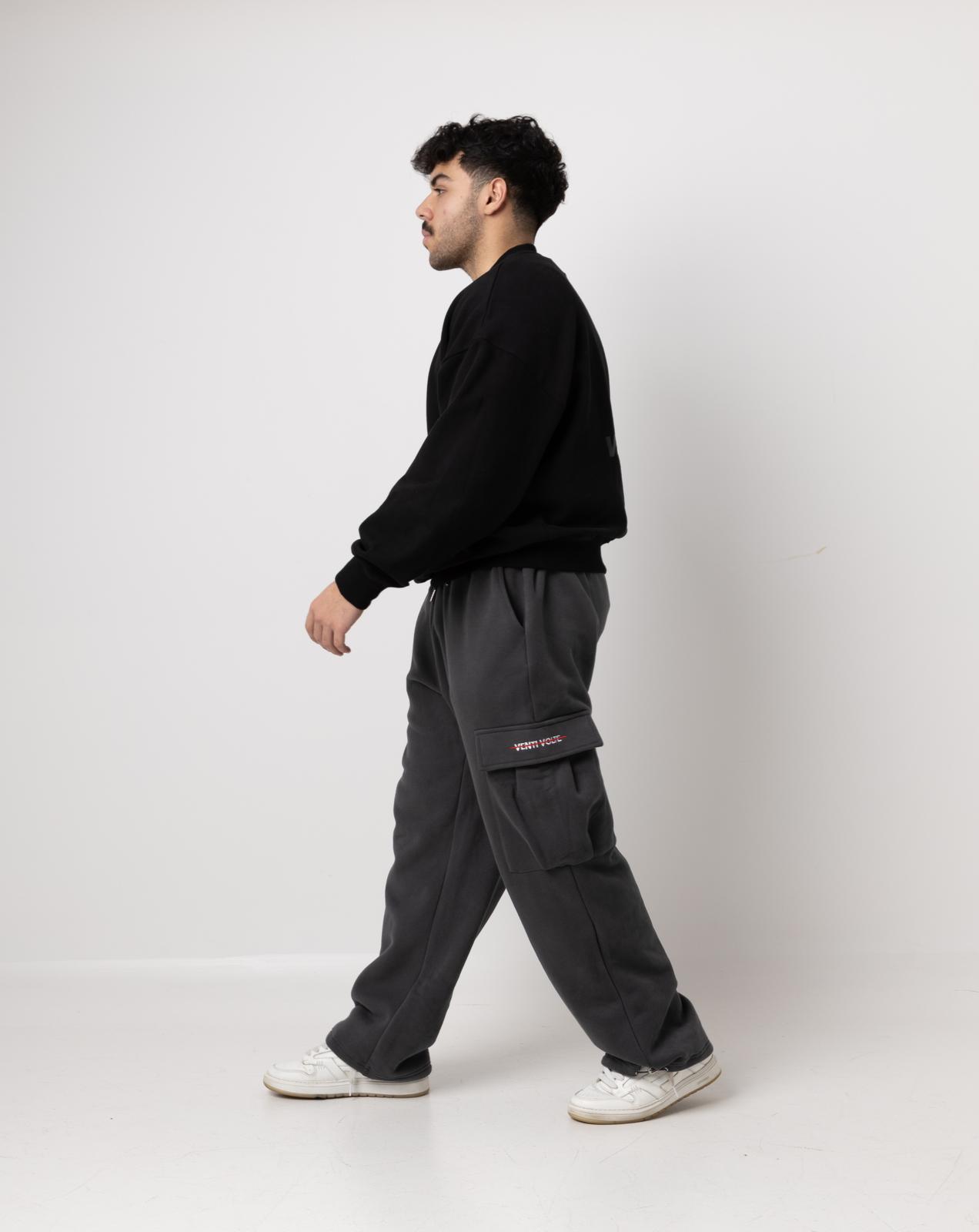 Elastic waisted sweatpants with Drawstring, bungee Cord open Bottom, Heavyweight Fleece Cargo Jogger, Casual baggy sweatpants.