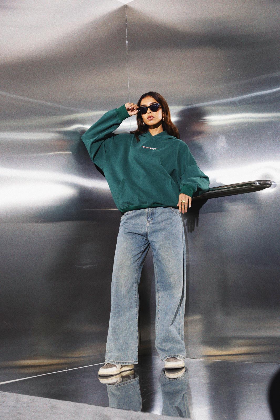 Pine Green V-Rosso Essential Hoodie