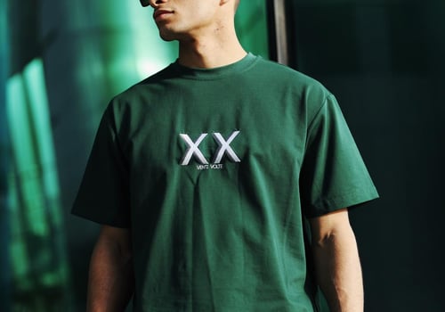 CREW NECK - DROPPED SHOULDERS - SHORT SLEEVES - STRAIGHT HEM.