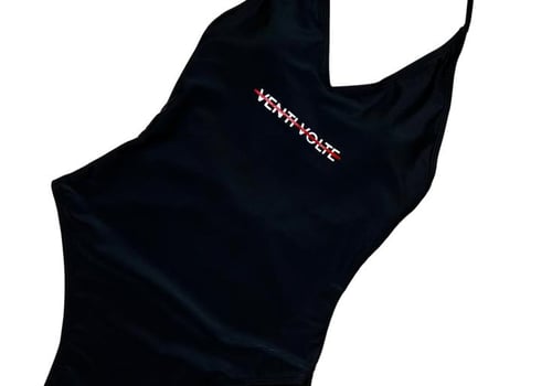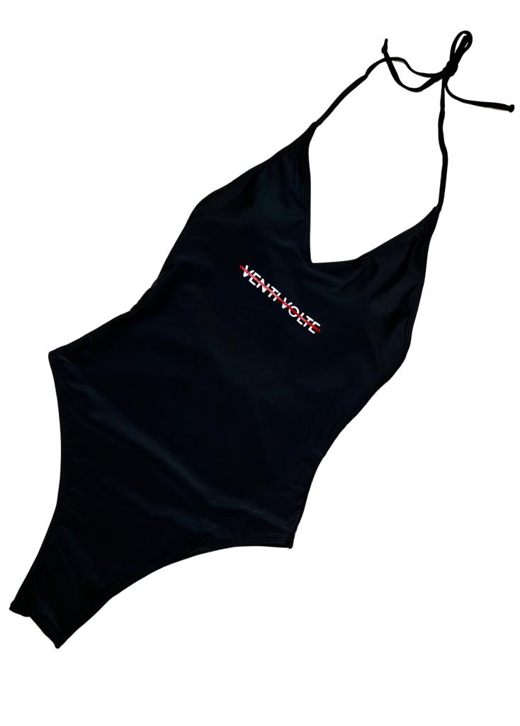 FEATURING AN ADJUSTABLE HALTER-NECK STRAPS AND A HIGH LEG CUT.